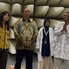Dengan nada ramah, Meutya menyapa, “Ibu mendampingi suaminya, ya?”